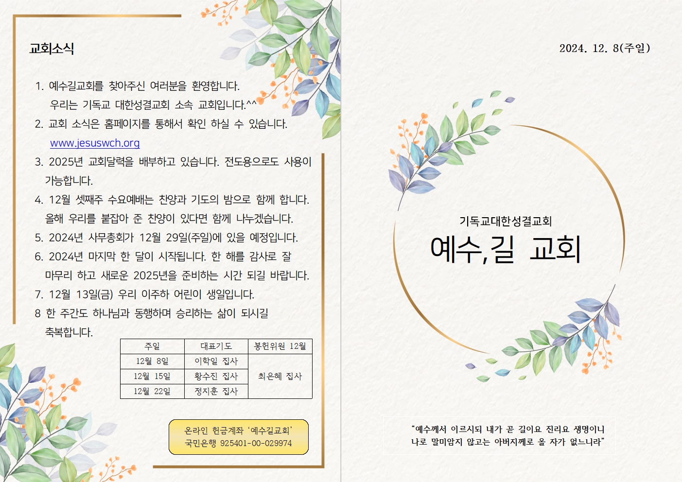 | 2024년 12월 15일 주일예배 주보 (0) | 2024.12.22 |