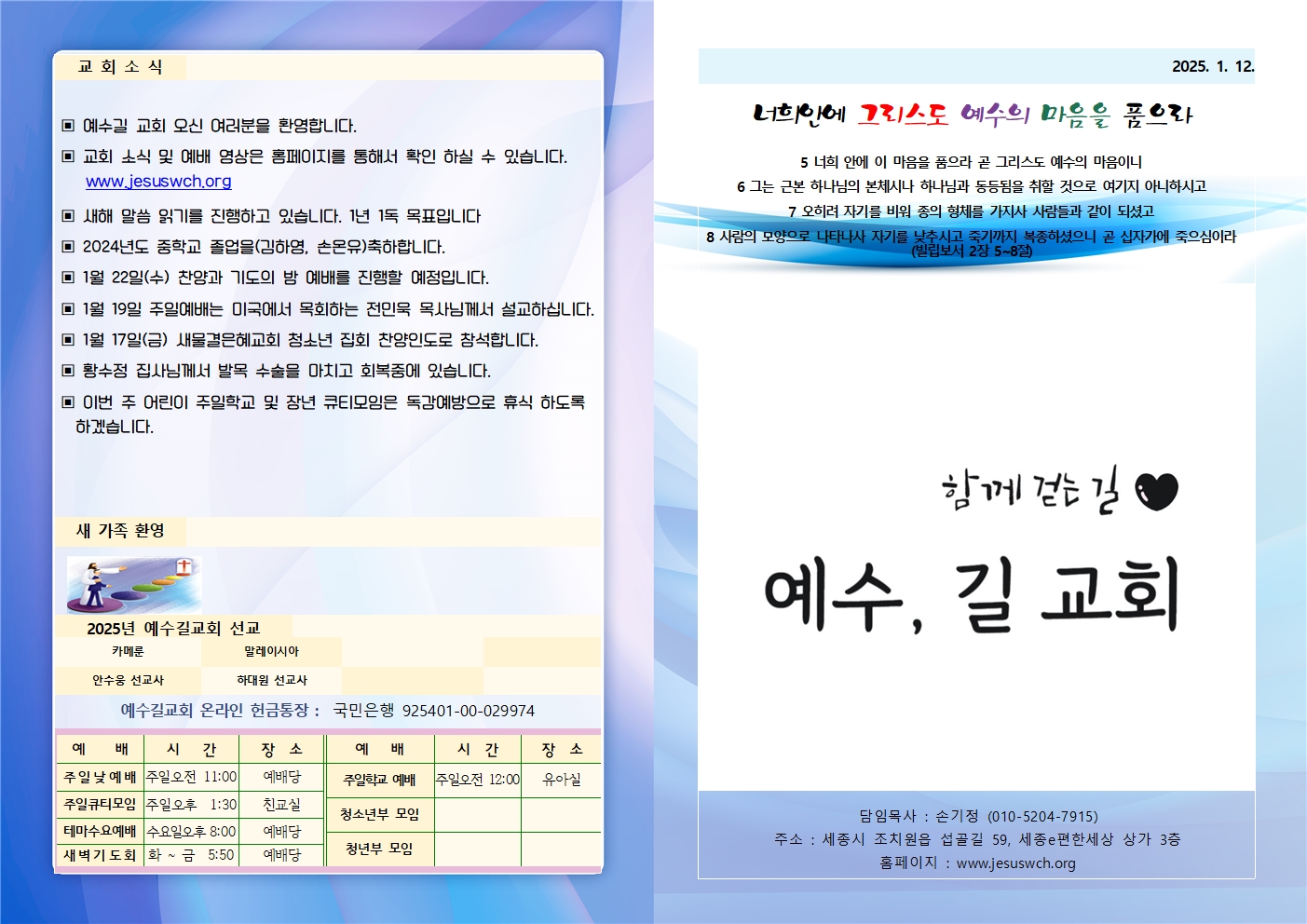 | 2025년 1월 5일 신년주일예배 주보 (1) | 2025.01.05 |