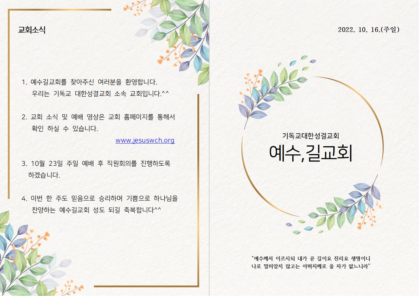 | 2022년 10월 9일 예수길교회 주보 (0) | 2022.10.08 |