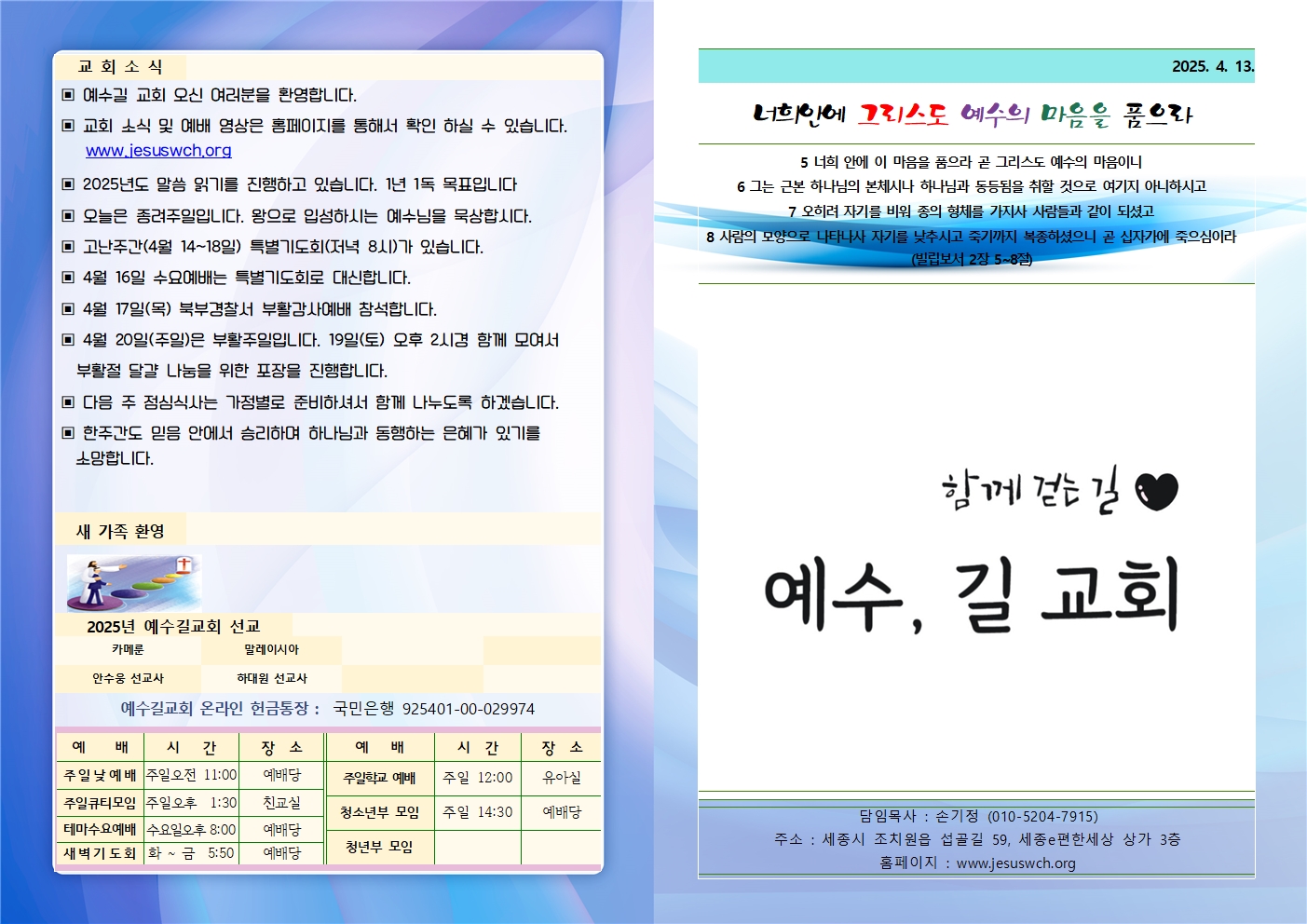 | 2025년 4월 20일 부활주일예배 주보 (0) | 2025.04.20 |