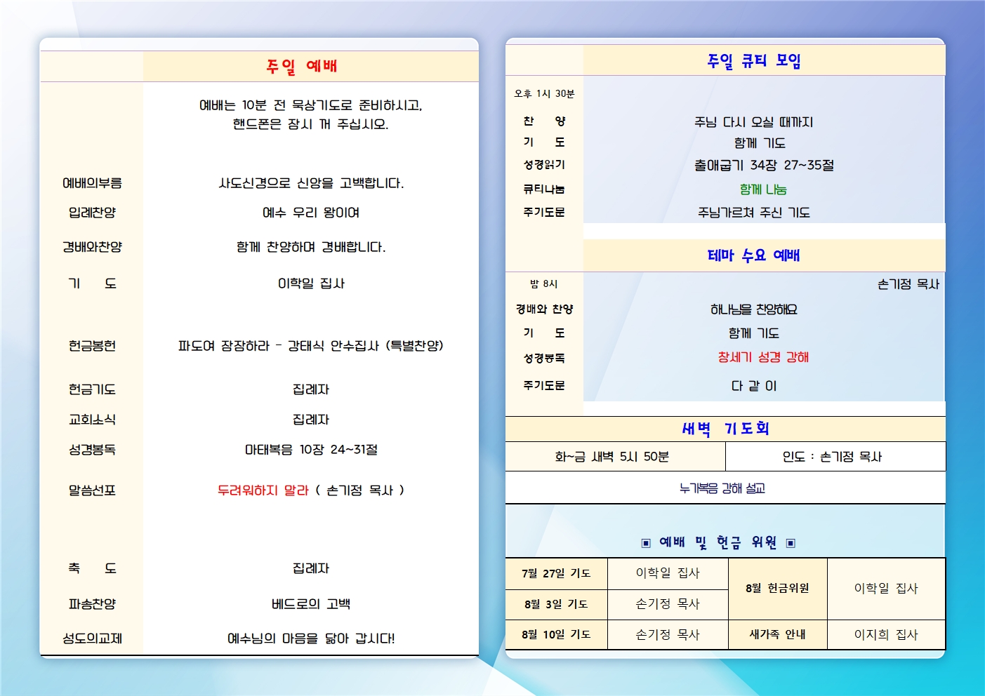 | 2025년 8월 10일 주일예배 주보 (0) | 2025.08.10 |