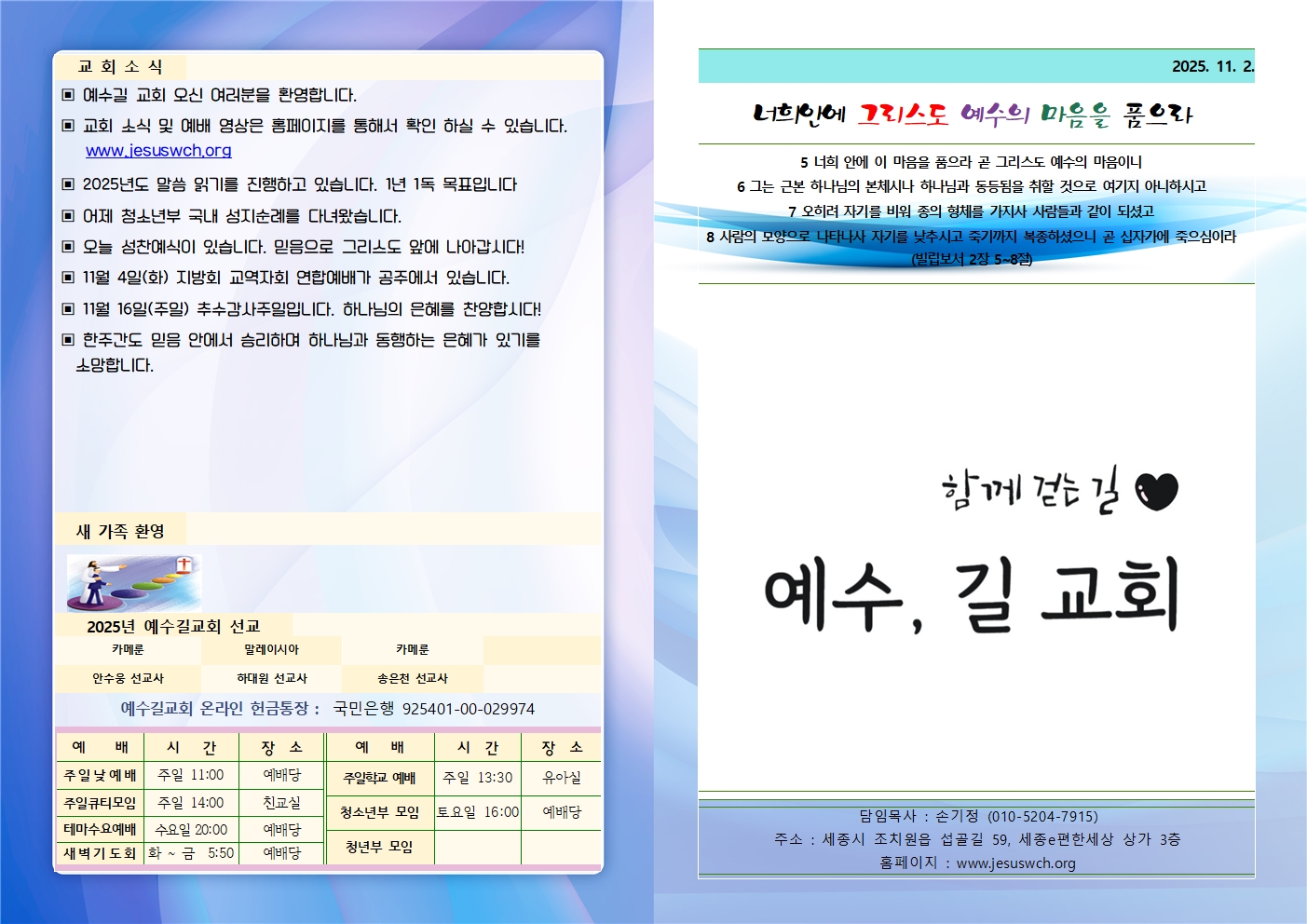 2025년 11월 2일 주일예배 주보
