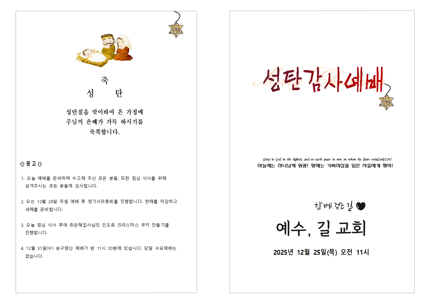 | 2025년 12월 28일 송년주일예배 주보 (0) | 2025.12.28 |