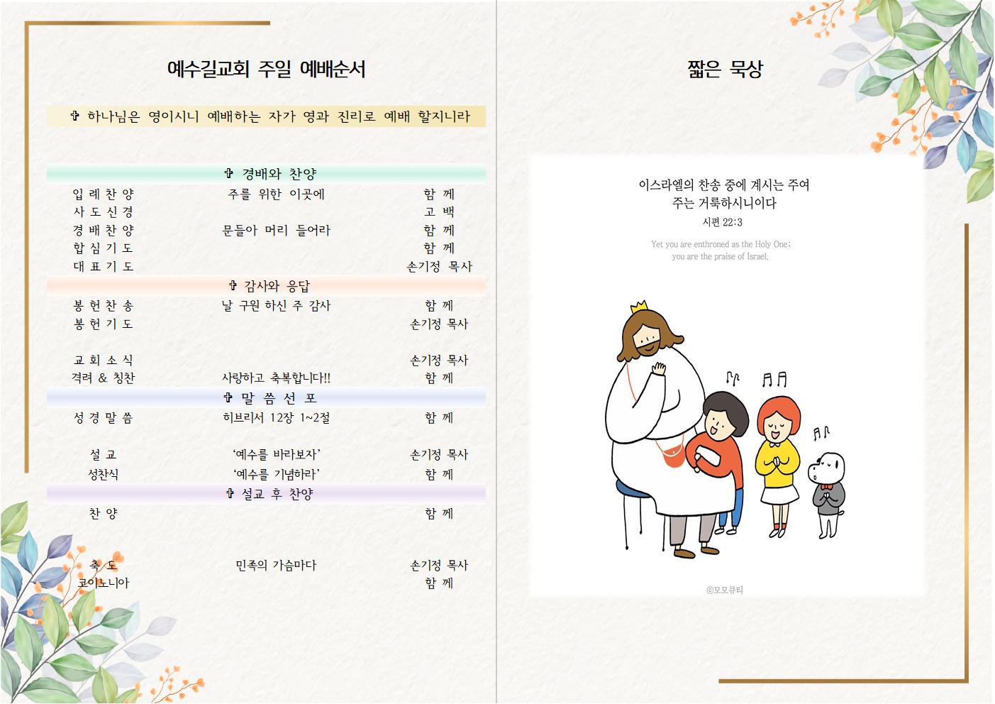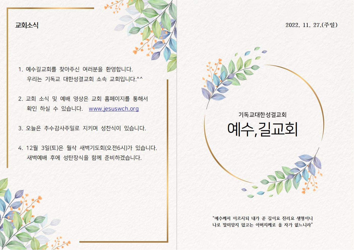 | 2022년 11월 6일 주일예배 주보 (0) | 2022.11.06 |