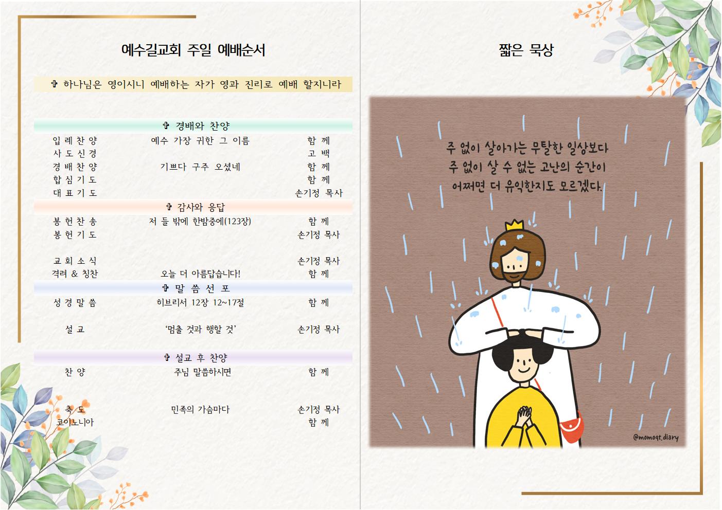 | 2022년 11월 6일 주일예배 주보 (0) | 2022.11.06 |