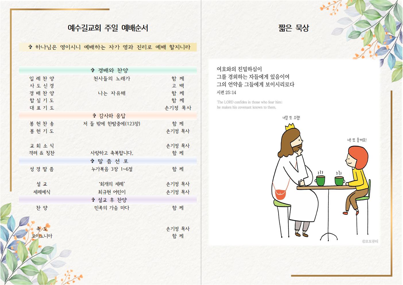 | 2023년 1월 8일 주일예배 주보 (0) | 2023.01.08 |