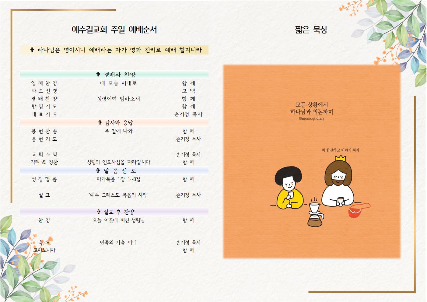| 2023년 1월 22일 주일예배 주보 (0) | 2023.01.22 |