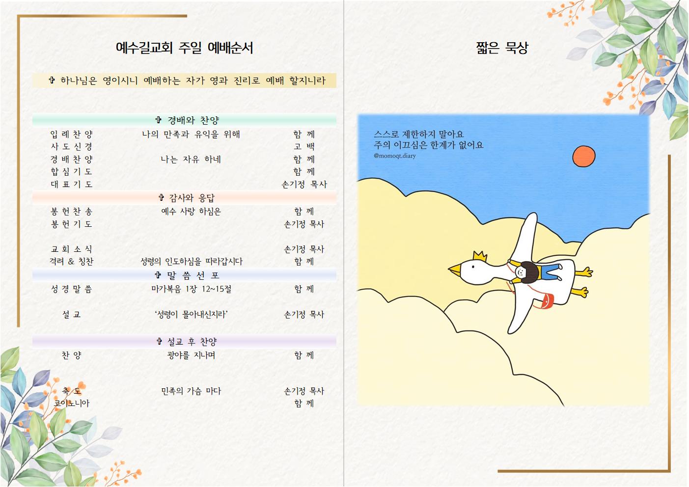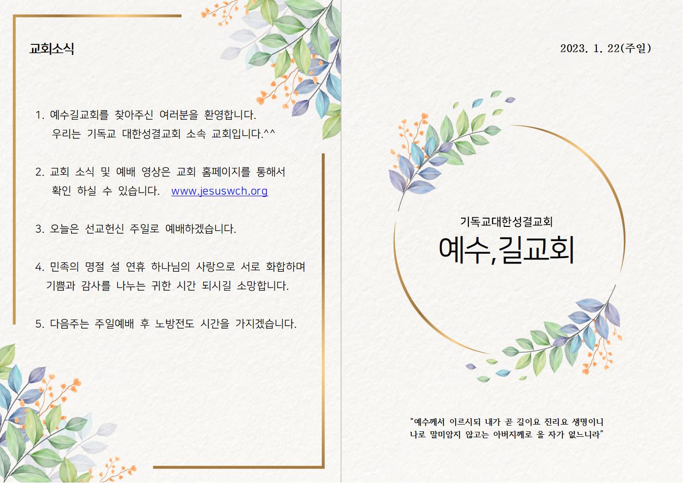 | 2023년 1월 8일 주일예배 주보 (0) | 2023.01.08 |