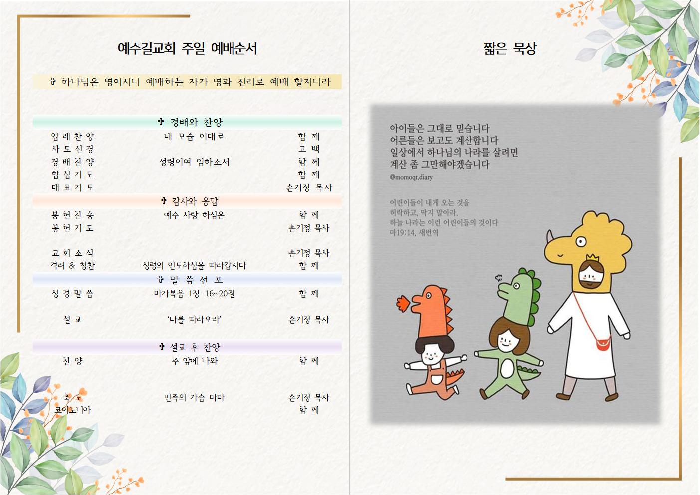 | 2023년 1월 8일 주일예배 주보 (0) | 2023.01.08 |