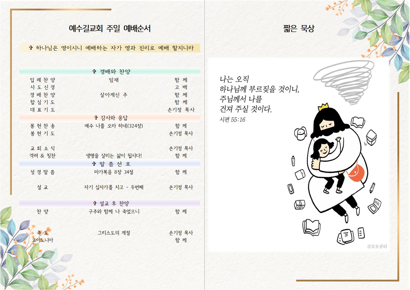 2023년 4월 16일 주일예배 주보