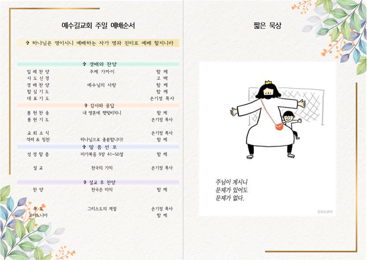 | 2023년 4월 9일 주일예배 주보 (0) | 2023.04.09 |