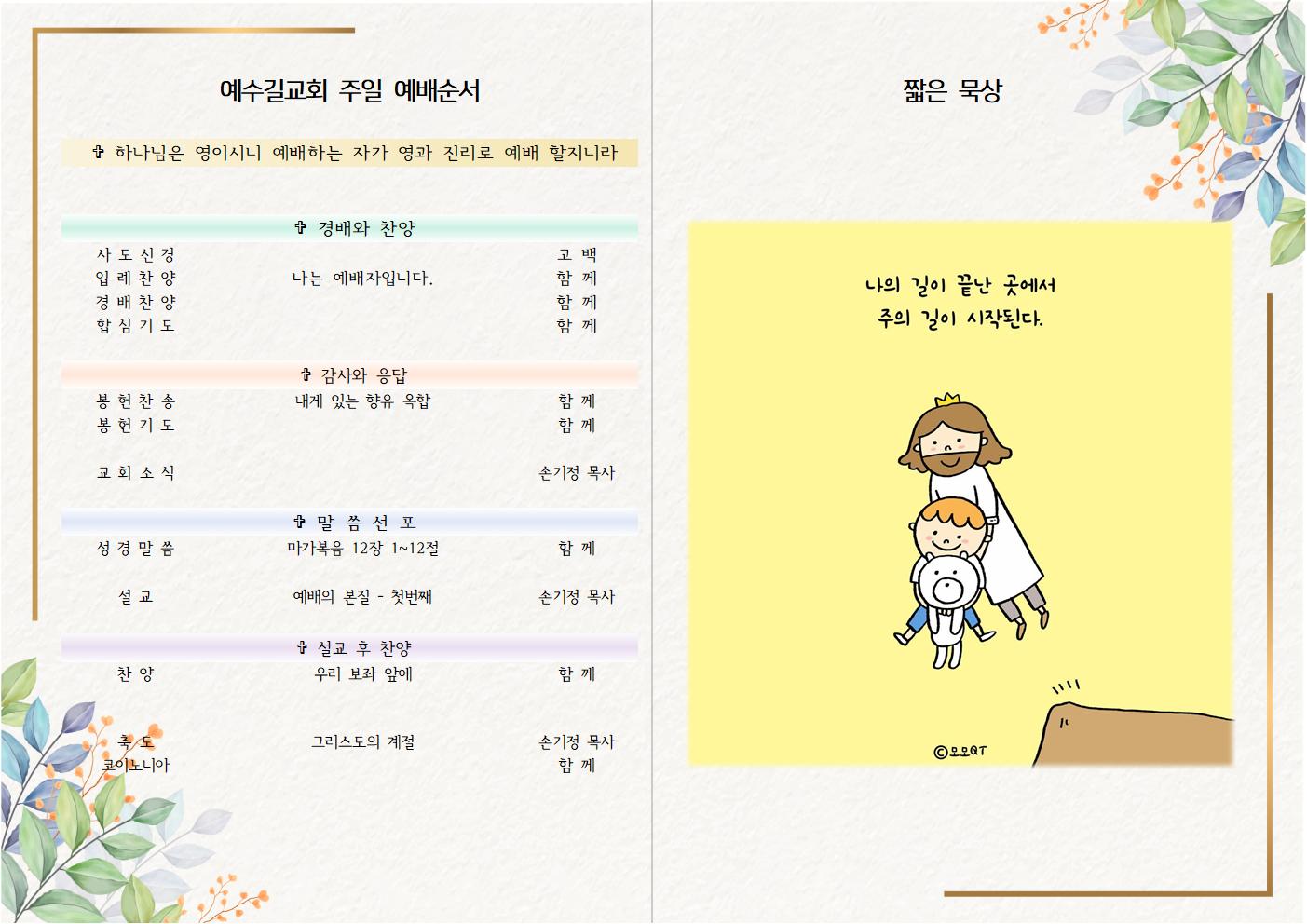 2023년 6월 4일 주일예배 주보