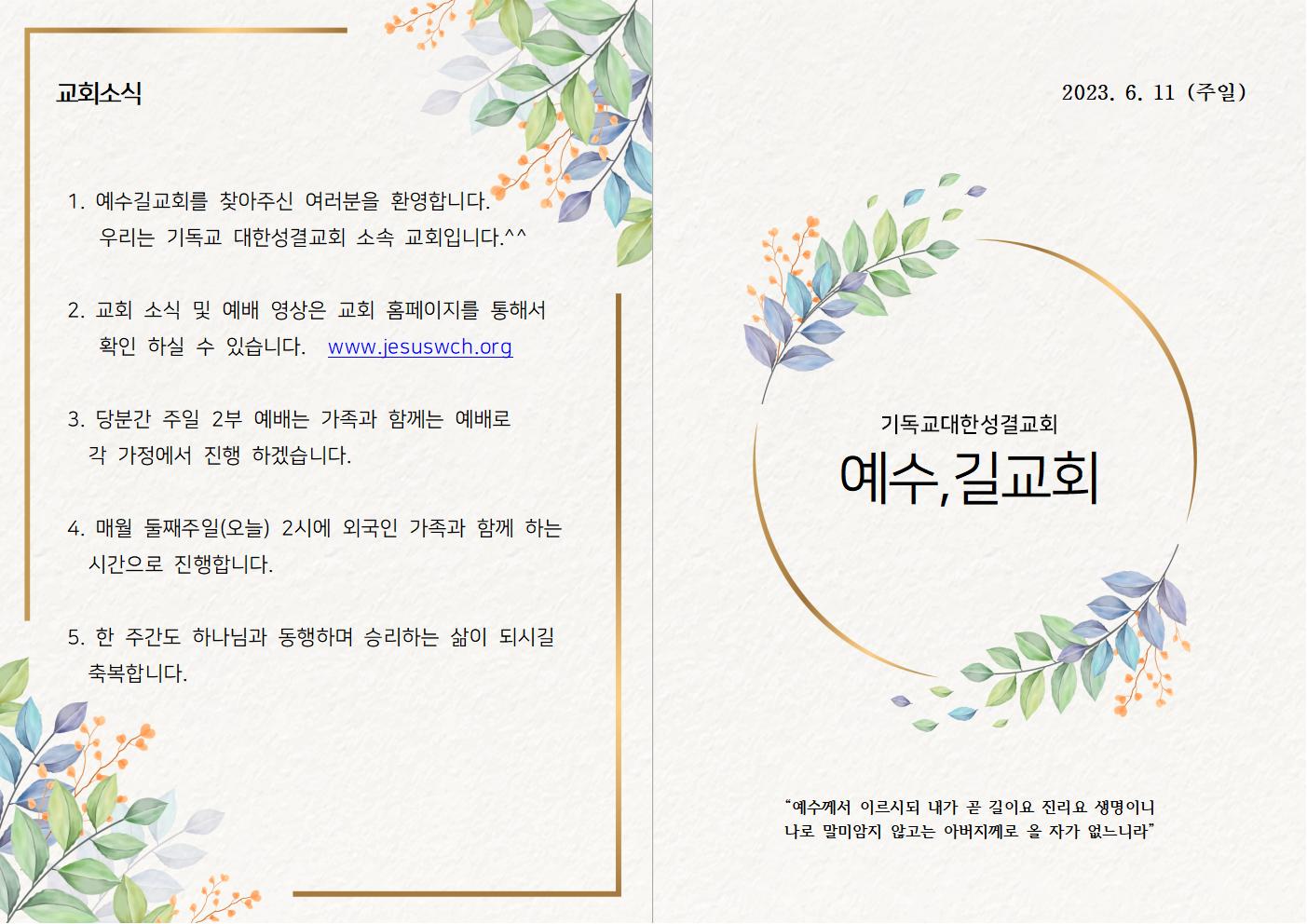 | 2023년 6월 4일 주일예배 주보 (0) | 2023.06.04 |