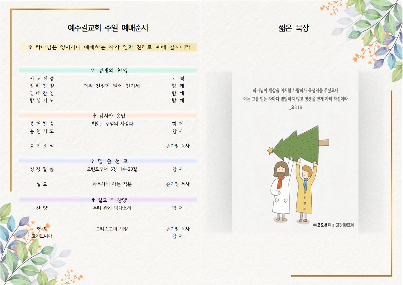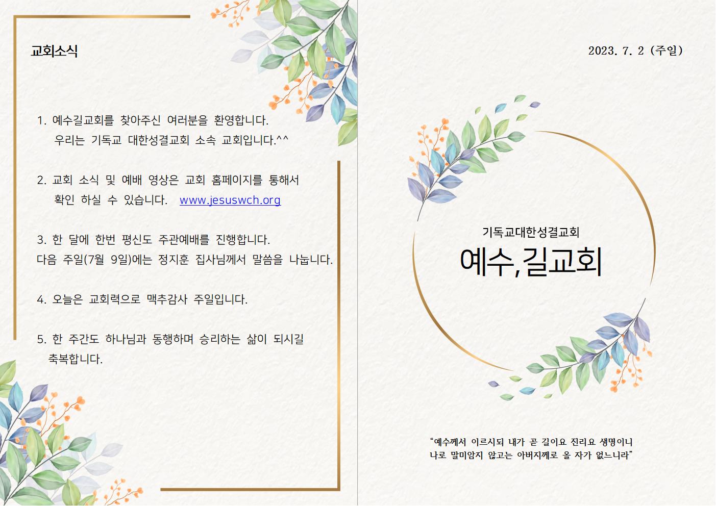 | 2023년 7월 9일 주일예배 주보 (0) | 2023.07.09 |