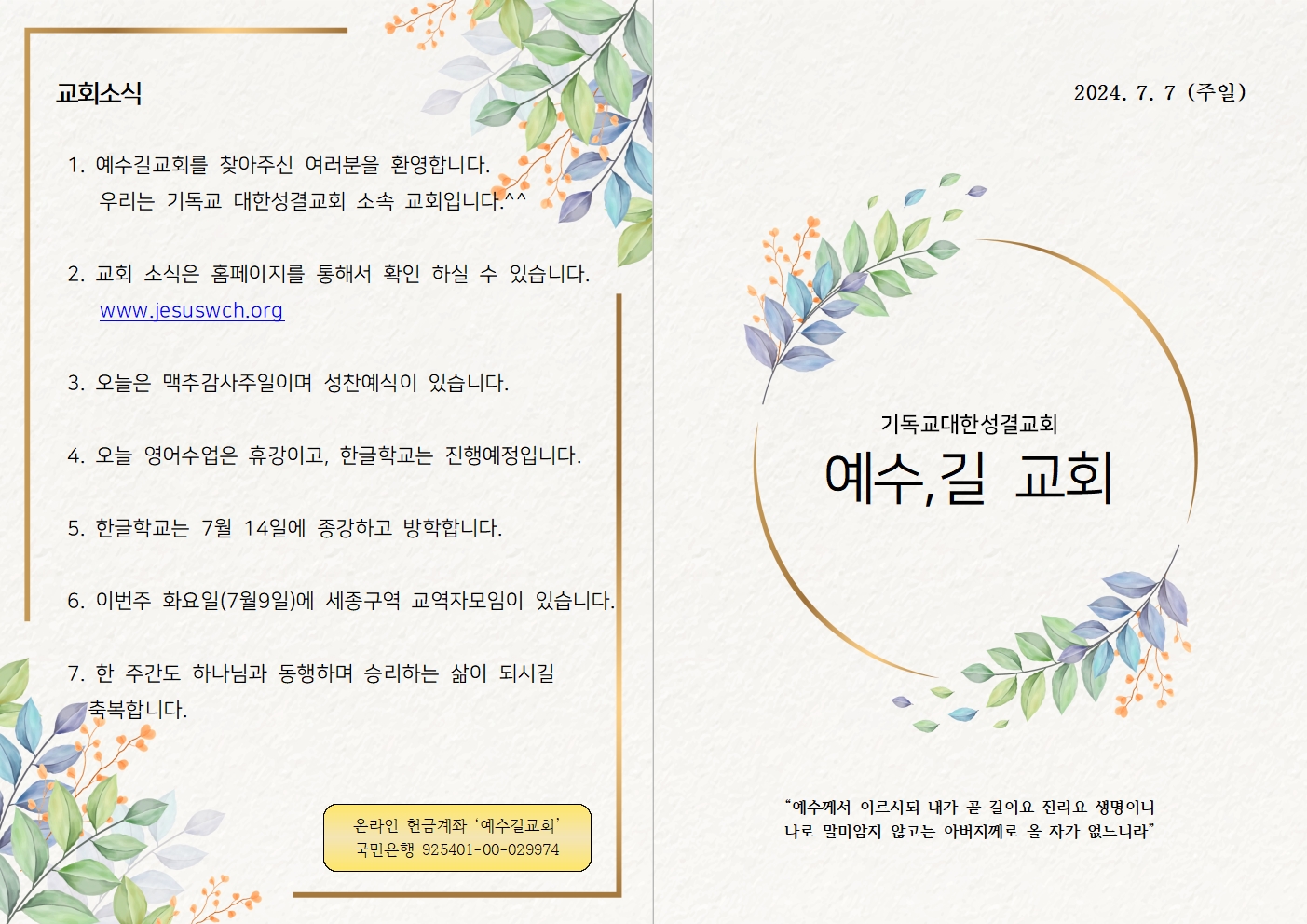 2024년 7월 7일 주일예배 주보