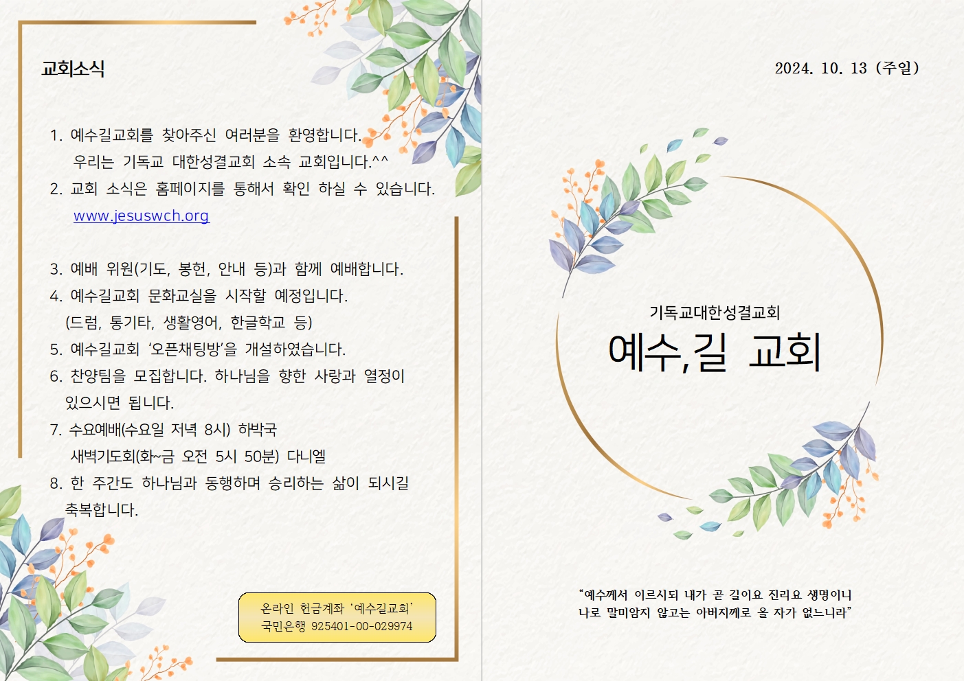 | 2024년 10월 20일 주일예배 주보 (0) | 2024.10.20 |