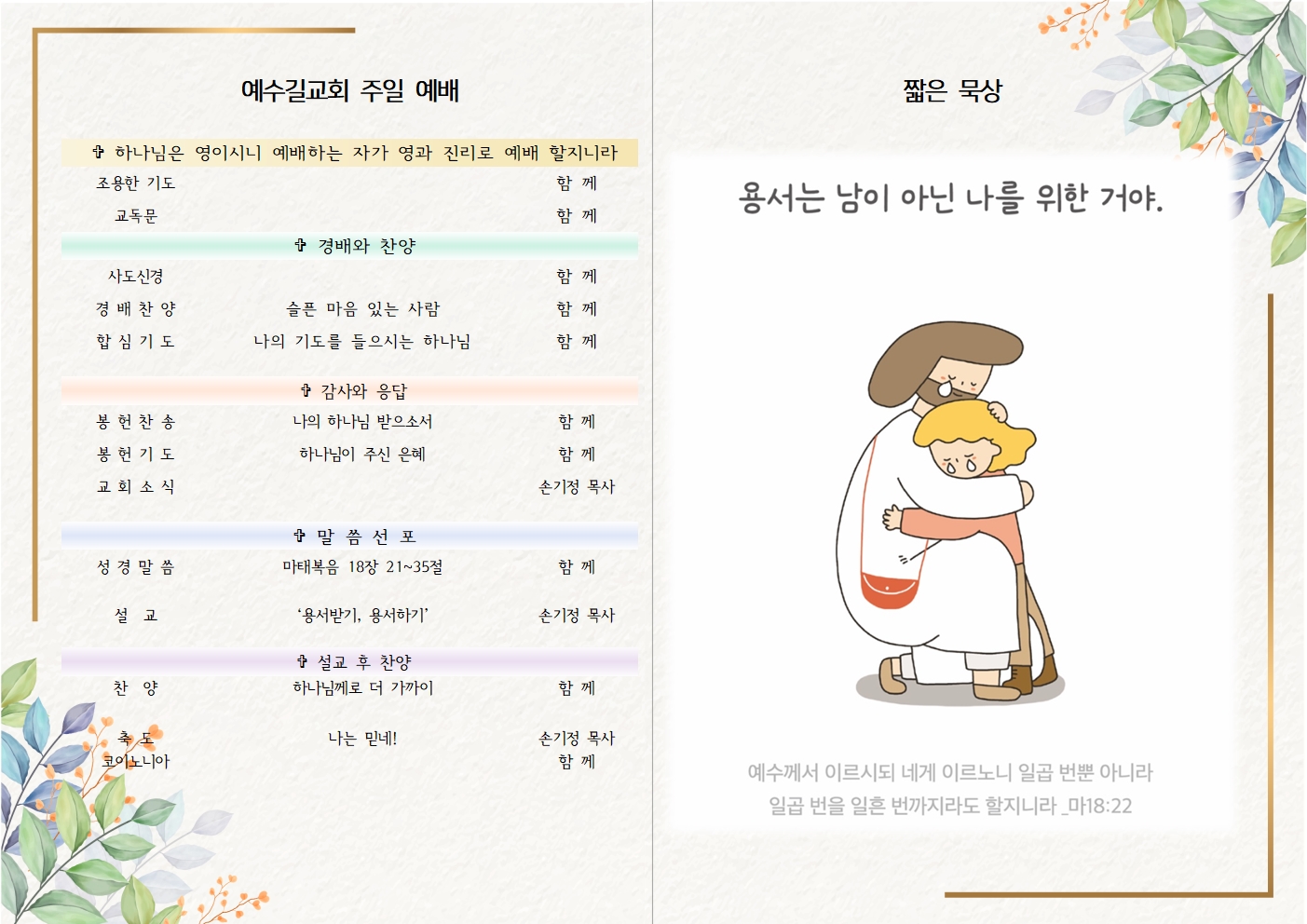 | 2024년 8월 4일 주일예배 주보 (0) | 2024.08.04 |