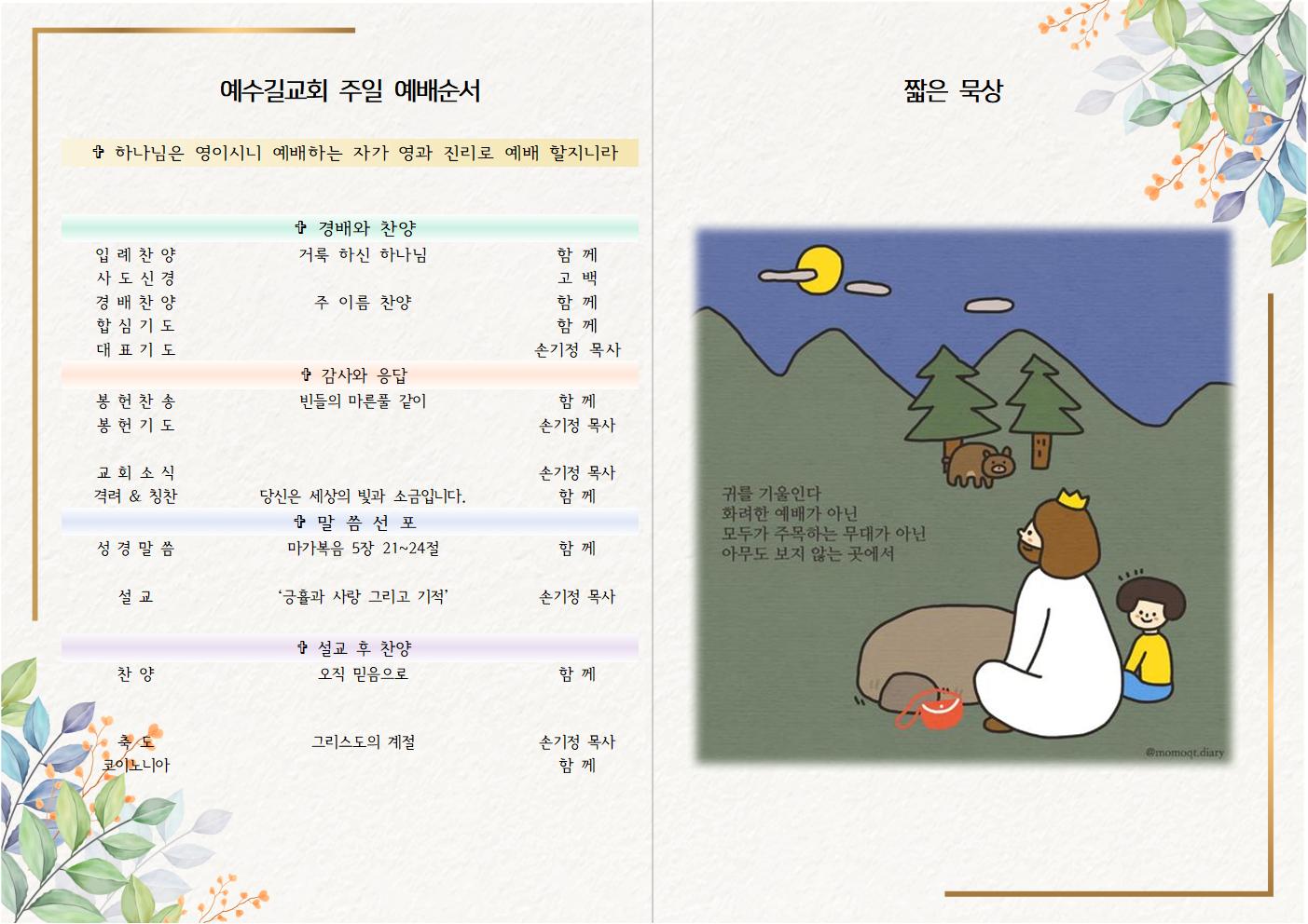 2023년 3월 5일 주일예배 주보