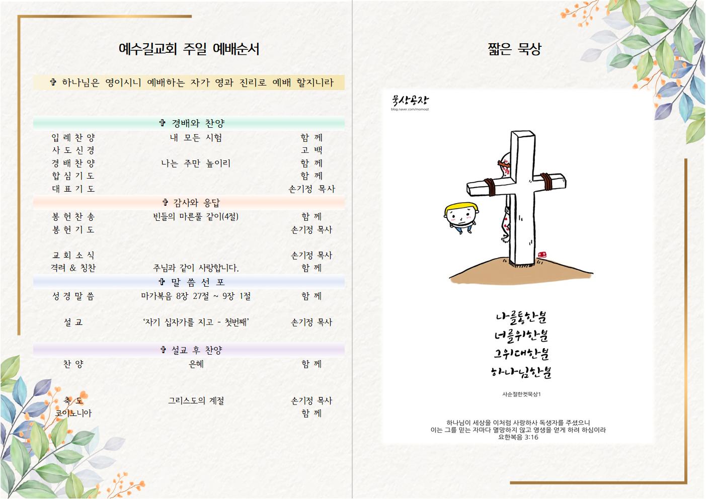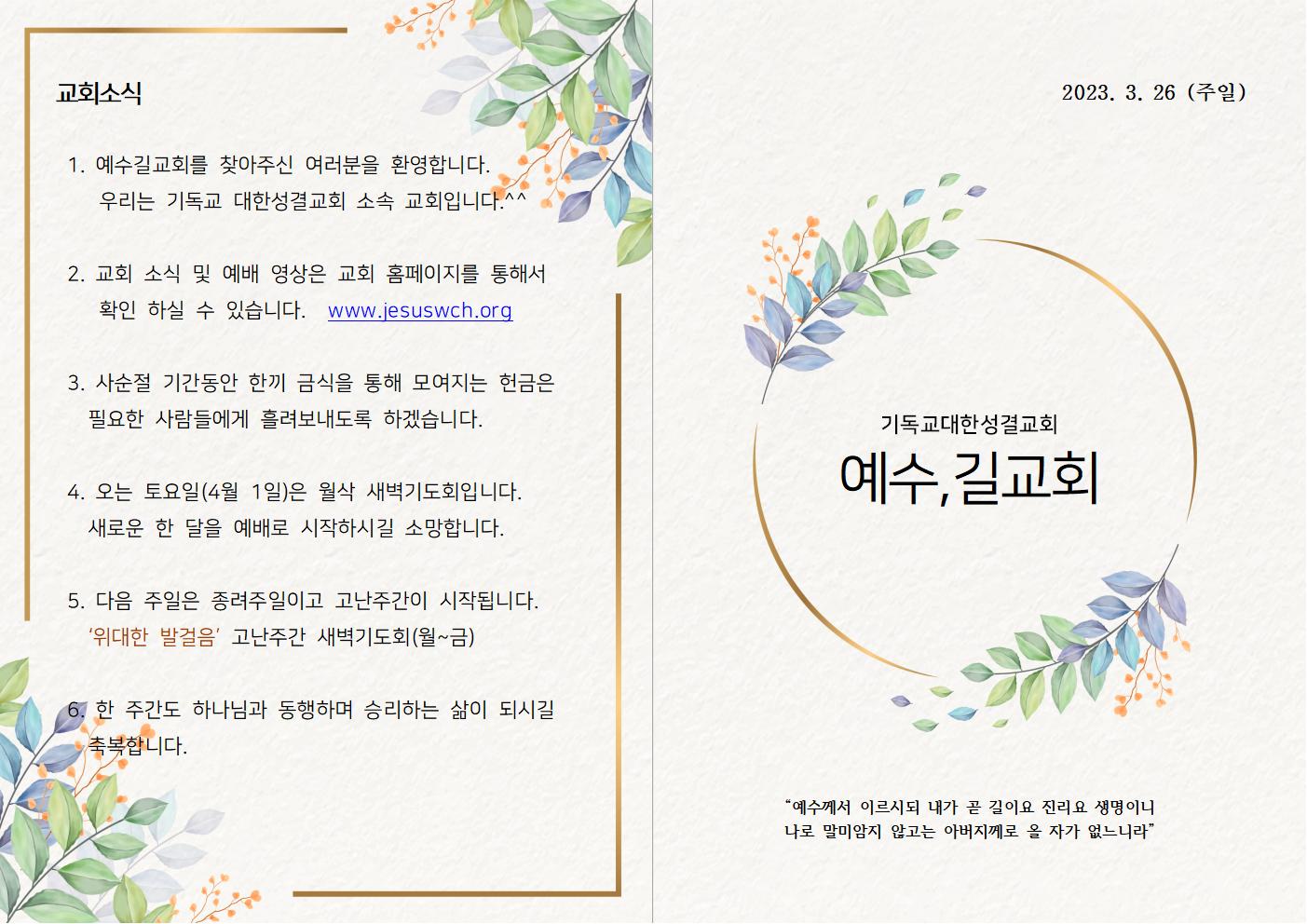 2023년 3월 26일 주일예배 주보
